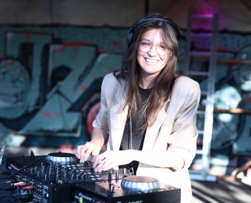 Theresa “Bi Män” Bittermann ist Sozial&Kulturanthropologin und Solo-selbstständig als Audiovisuelle Interventionskünstlerin in der freien Szene und macht postfemale crossover. Sie wirkt als DJ*, Veranstalterin, Autorin, Moderatorin sowie Teilgeberin in verschiedenen Kollektiven und macht die Öffentlichkeitsarbeit im lesbisch-queeren Zentrum LeZ.